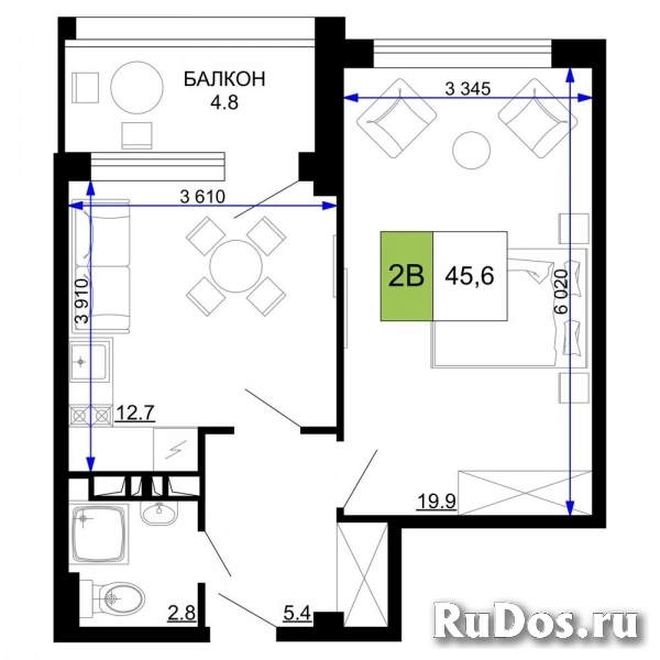 - Общая площадь (м2): 45.6