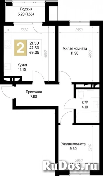 - Количество комнат: Двухкомнатная