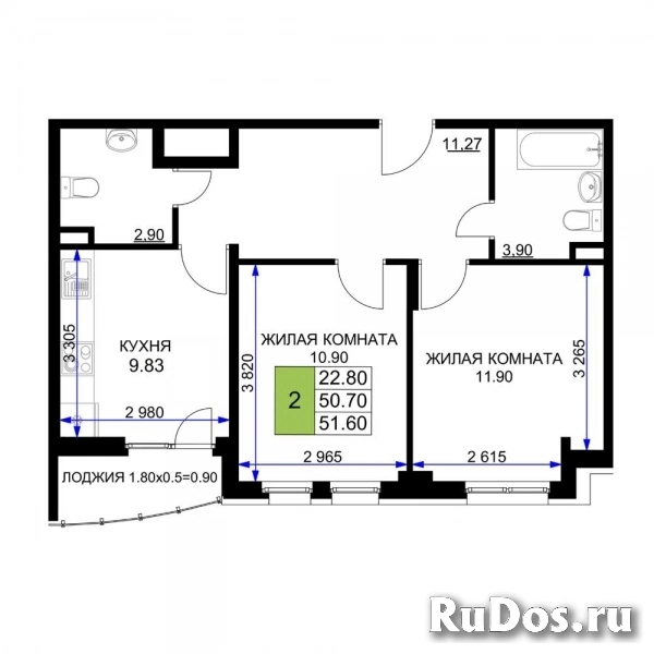 Жилая площадь 22.8 м2, кухня 9.83 м2, предчистовая отделка.