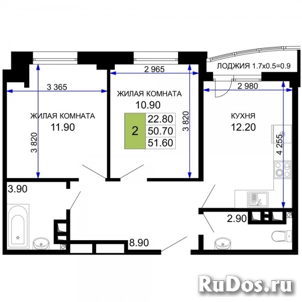 - Количество комнат: Двухкомнатная