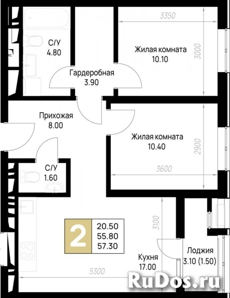 - Общая площадь (м2): 57.3