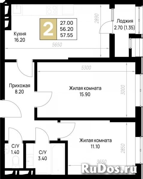- Общая площадь (м2): 57.55