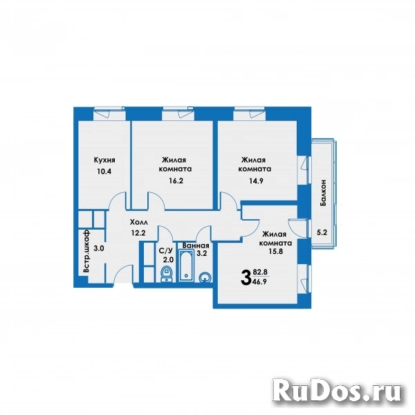 - Количество комнат: Трехкомнатная