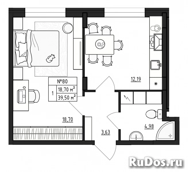 - Количество комнат: Однокомнатная