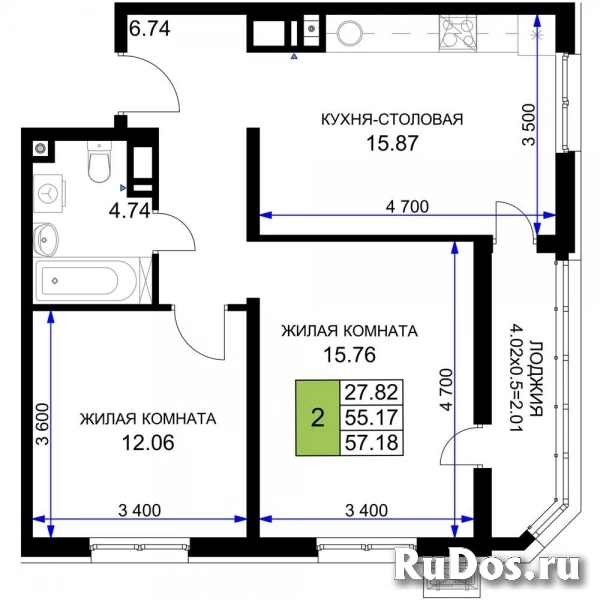 - Общая площадь (м2): 57.18
