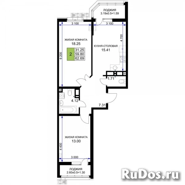 - Общая площадь (м2): 62.69