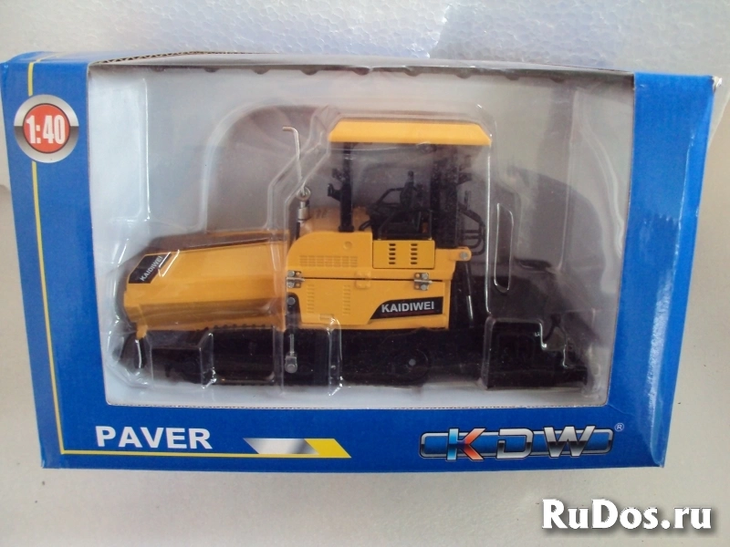 Цвет: жёлтый, масштаб: 1: 40, сделан из металла с элементами пластика, на гусеницах. Является копией настоящего асфальтоукладчика,состояние:новое.
