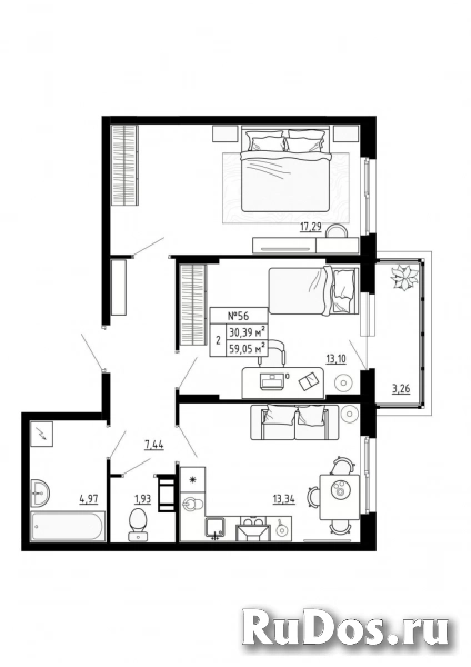 - Общая площадь (м2): 59.03