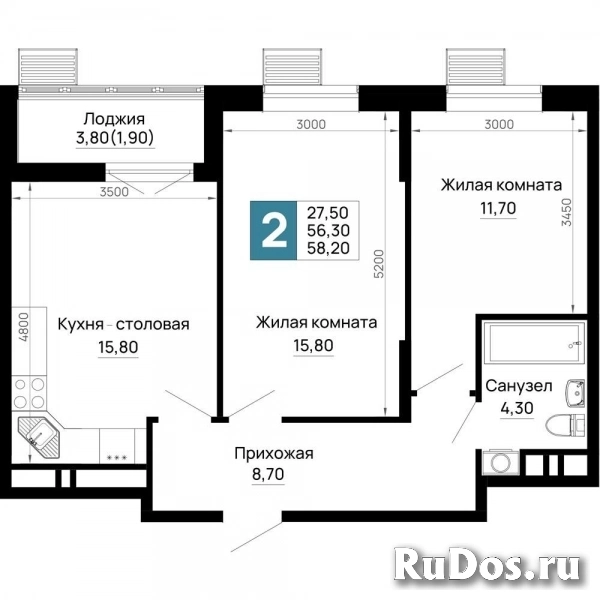 - Общая площадь (м2): 58.2