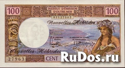 Новые Гибриды. 100 франков 1977 года. Французская колония. Банк для заморских территорий.