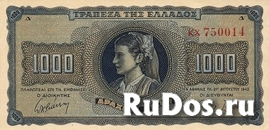 Греция. 1000 драхм 1942 год. Состояние прессовое.