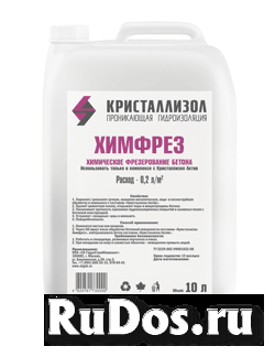 Состав «Кристаллизол Химфрез» – кислотный очиститель красного цвета с рН=1–2 растворяет цементную пленку, открывает поры и увеличивает глубину проникновения покрытий в бетон.
