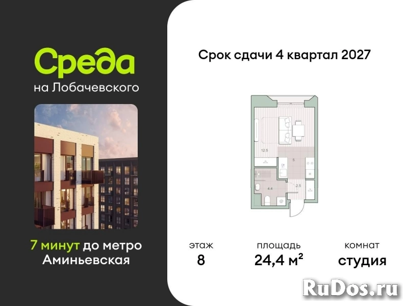 Продаётся студия общей площадью 24.40 кв. м. с отделкой на выбор: черновая, White Box. Квартира на 8 этаже корпуса 5.7 в жилом комплексе бизнес-класса «Среда на Лобачевского». До метро «Аминьевская» 7 минут пешком.