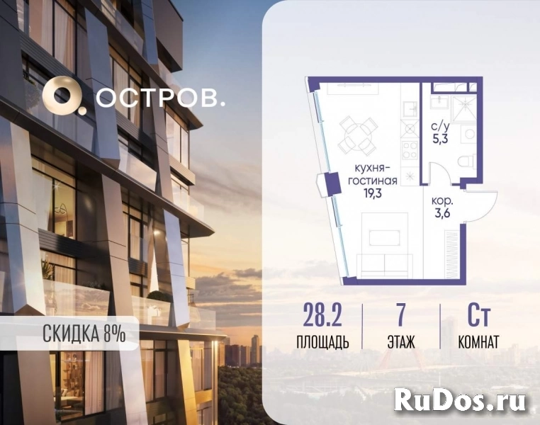 Продаётся квартира от застройщика: общая площадь 28.20 м, жилая 10.00 м, кухня 9.30 м, 7-й этаж, жилой квартал «Остров 12», корпус 3 (секция 1) . Срок сдачи: 1 квартал 2029 года.