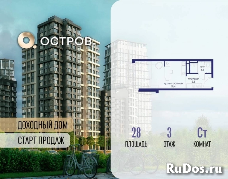 Продаётся квартира от застройщика: общая площадь 28.00 м, жилая 14.40 м, кухня 5.00 м, 3-й этаж, жилой квартал «Остров 14», корпус 1 (секция 1) . Срок сдачи: 2 квартал 2029 года.