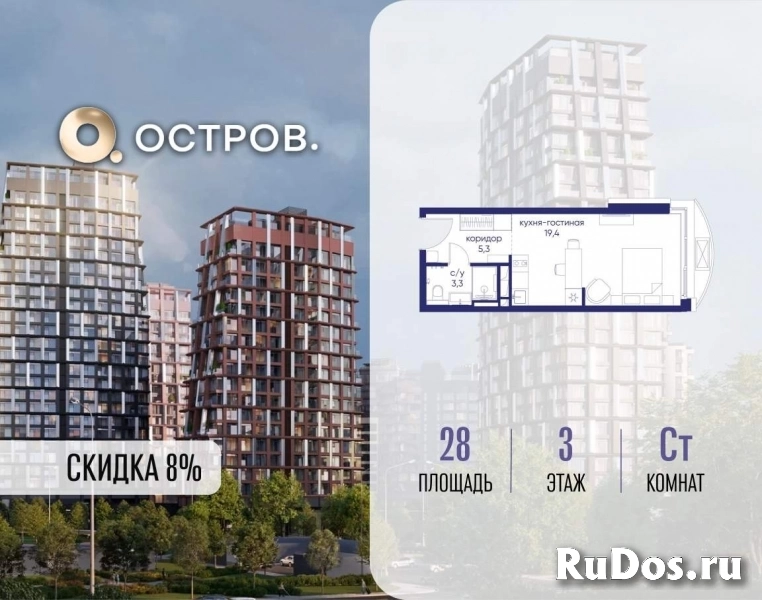 Продаётся квартира от застройщика: общая площадь 28.00 м, жилая 14.00 м, кухня 5.00 м, 3-й этаж, жилой квартал «Остров 14», корпус 1 (секция 1) . Срок сдачи: 2 квартал 2029 года.