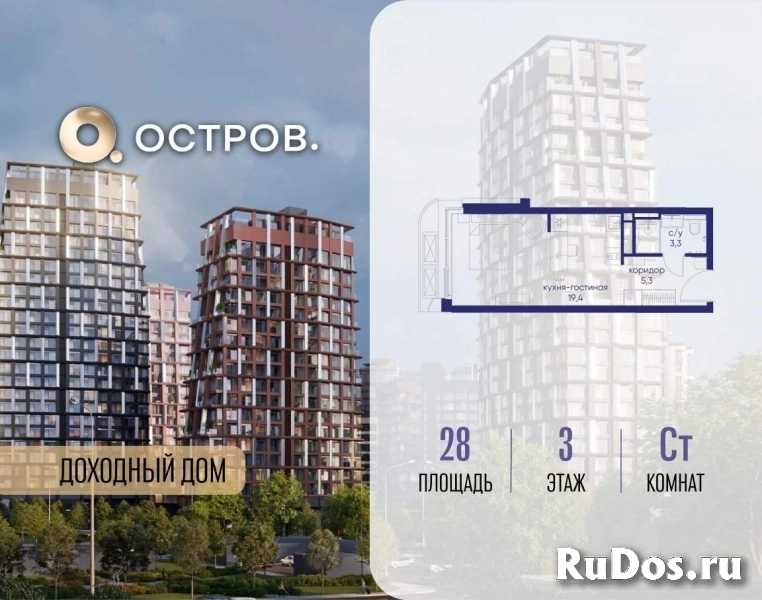 Продаётся квартира от застройщика: общая площадь 28.00 м, жилая 14.40 м, кухня 5.00 м, 3-й этаж, жилой квартал «Остров 14», корпус 1 (секция 2) . Срок сдачи: 2 квартал 2029 года.