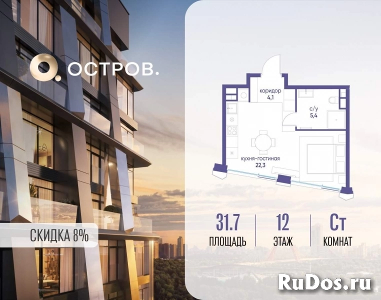 Продаётся квартира от застройщика: общая площадь 31.70 м, жилая 17.30 м, кухня 5.00 м, 12-й этаж, жилой квартал «Остров 12», корпус 2 (секция 1) . Срок сдачи: 1 квартал 2029 года.