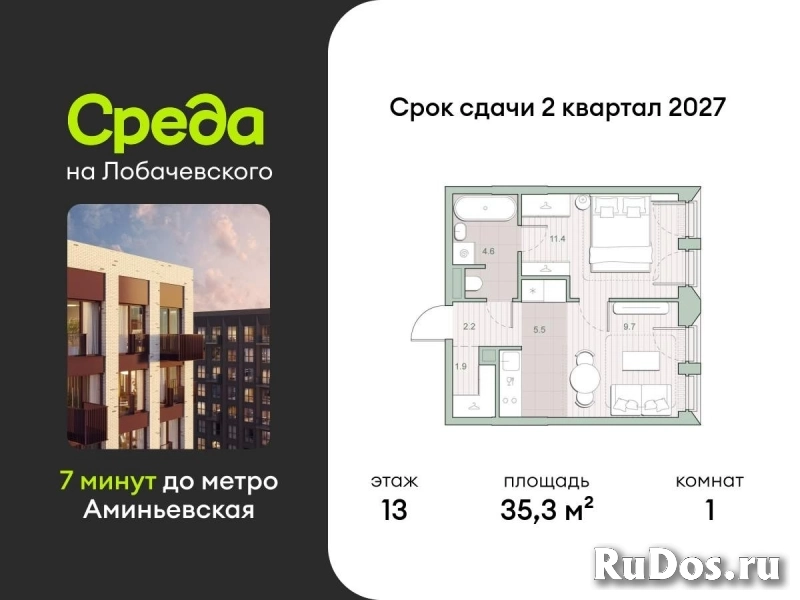 Продаётся однокомнатная квартира общей площадью 35.30 кв. м. с отделкой на выбор: черновая, White Box. Квартира на 13 этаже корпуса 5.3 в жилом комплексе бизнес-класса «Среда на Лобачевского». До метро «Аминьевская» 7 минут пешком.