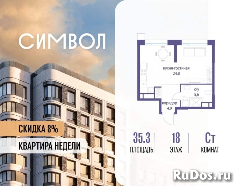 Продается квартира-студия от застройщика: общая площадь 35.30 м, жилая 10.00 м, кухня 14.80 м, 18-й этаж, жилой квартал «Гордость», корпус 36 (секция 4) . Срок сдачи: 2 квартал 2029 года.