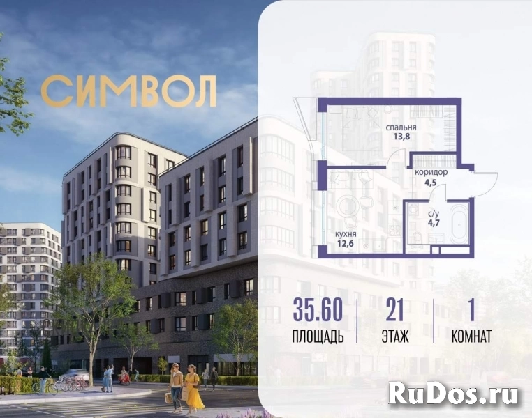 Продается 1-комнатная квартира от застройщика: общая площадь 35.60 м, жилая 13.80 м, кухня 12.60 м, 21-й этаж, жилой квартал «Вдохновение», корпус 33 (секция 3) . Срок сдачи: 4 квартал 2027 года.