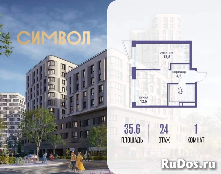 Продается 1-комнатная квартира от застройщика: общая площадь 35.60 м, жилая 13.80 м, кухня 12.60 м, 24-й этаж, жилой квартал «Вдохновение», корпус 33 (секция 3) . Срок сдачи: 4 квартал 2027 года.