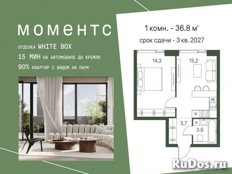 Жилая площадь 14.3 м2, кухня 15.2 м2, предчистовая отделка, комнаты изолированные, совмещенных санузлов - 1.