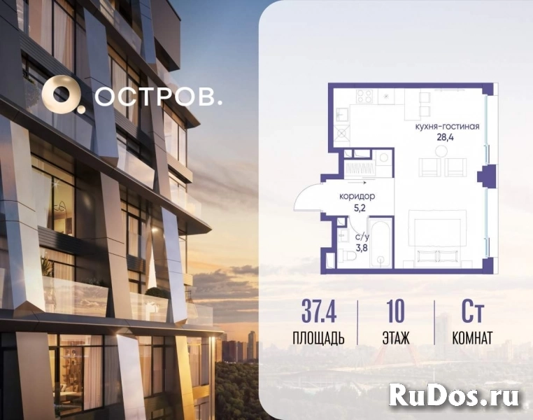 Продаётся квартира от застройщика: общая площадь 37.40 м, жилая 23.40 м, кухня 5.00 м, 10-й этаж, жилой квартал «Остров 12», корпус 1 (секция 1) . Срок сдачи: 1 квартал 2029 года.