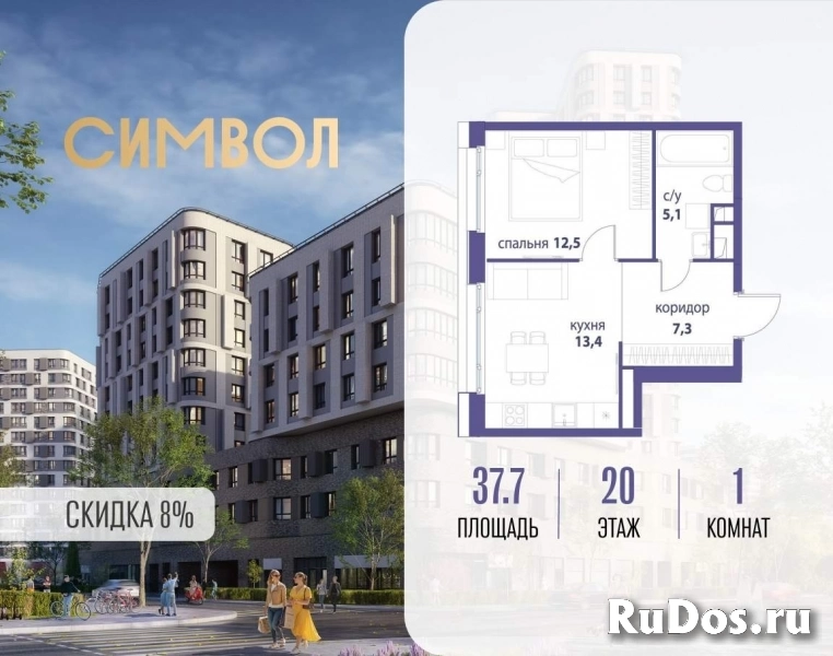 Продается 1-комнатная квартира от застройщика: общая площадь 37.70 м, жилая 12.50 м, кухня 13.40 м, 20-й этаж, жилой квартал «Вдохновение», корпус 32 (секция 1) . Срок сдачи: 4 квартал 2027 года.