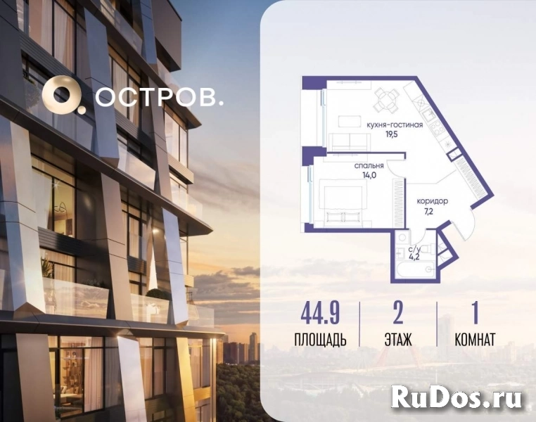 Продаётся 1-комн. квартира от застройщика: общая площадь 44.90 м, жилая 14.00 м, кухня 19.50 м, 2-й этаж, жилой квартал «Остров 12», корпус 1 (секция 1) . Срок сдачи: 1 квартал 2029 года.