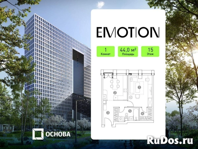 Продаются 1-к апартаменты площадью 44.0 кв.м. на 15-м этаже 28 этажного дома в "Emotion" от ГК ОСНОВА
