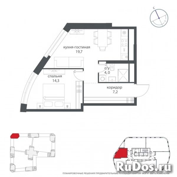 Квартира располагается на 7 этаже 24-этажного дома в ЖК Начало.