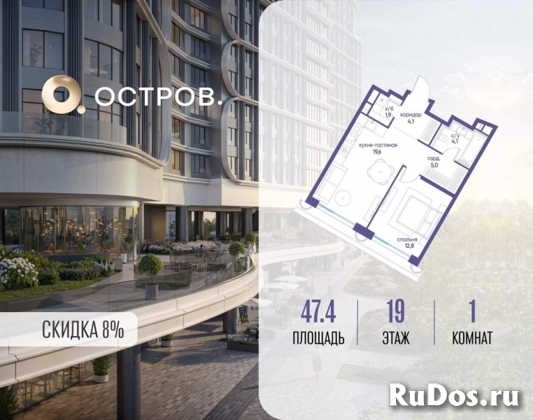 Продаётся 1-комн. квартира от застройщика: общая площадь 47.40 м, жилая 12.80 м, кухня 19.60 м, 19-й этаж, жилой квартал «Остров 7», корпус 7 (секция 1) . Срок сдачи: 3 квартал 2028 года.