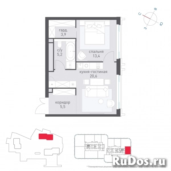 - Количество комнат: Однокомнатная