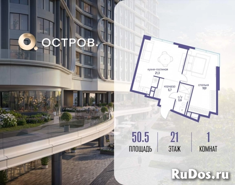 Продаётся 1-комн. квартира от застройщика: общая площадь 50.50 м, жилая 19.90 м, кухня 21.30 м, 21-й этаж, жилой квартал «Остров 7», корпус 7 (секция 1) . Срок сдачи: 3 квартал 2028 года.