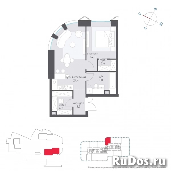 Жилая площадь 34 м2, кухня 24 м2, квартира без отделки, комнаты изолированные, совмещенных санузлов - 1, балконов - 1.