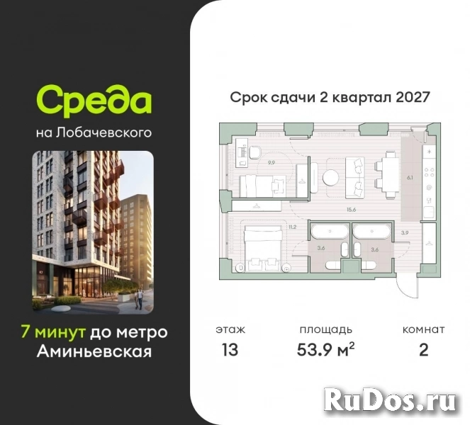Застройщик - Среда, сдача дома - II квартал 2027 года, высота потолков 2.92 м.