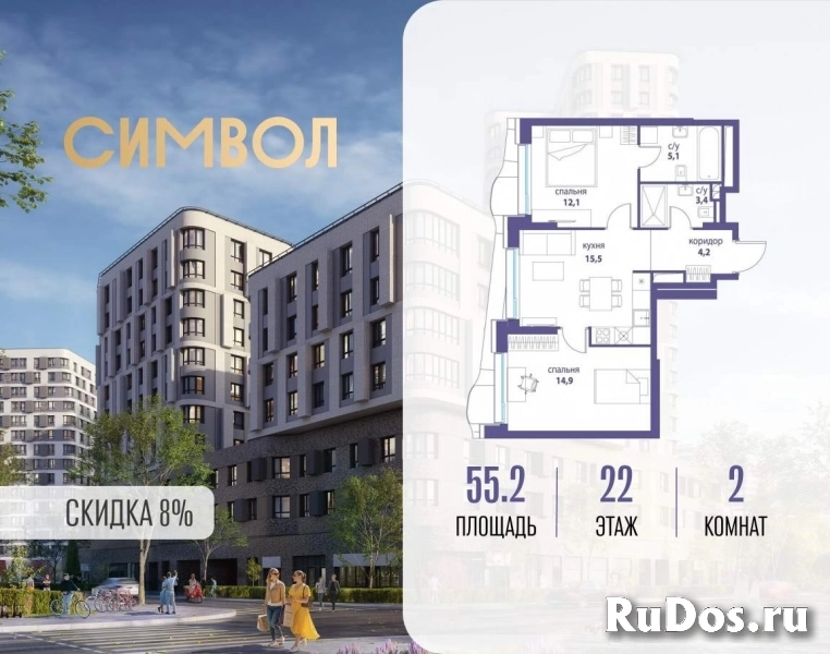 Продается 2-комнатная квартира от застройщика: общая площадь 55.20 м, жилая 27.00 м, кухня 15.50 м, 22-й этаж, жилой квартал «Вдохновение», корпус 34 (секция 1) . Срок сдачи: 4 квартал 2027 года.