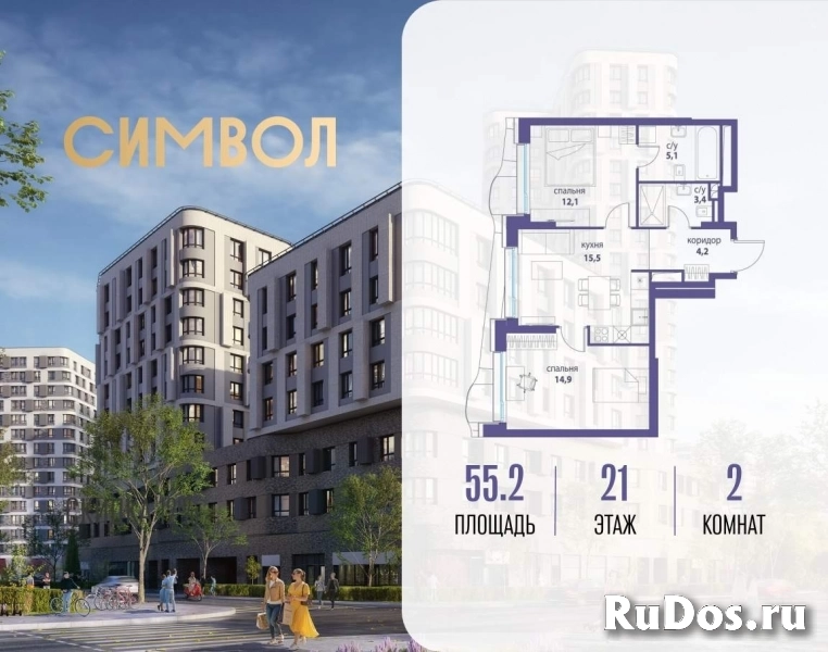 Продается 2-комнатная квартира от застройщика: общая площадь 55.20 м, жилая 27.00 м, кухня 15.50 м, 21-й этаж, жилой квартал «Вдохновение», корпус 34 (секция 1) . Срок сдачи: 4 квартал 2027 года.