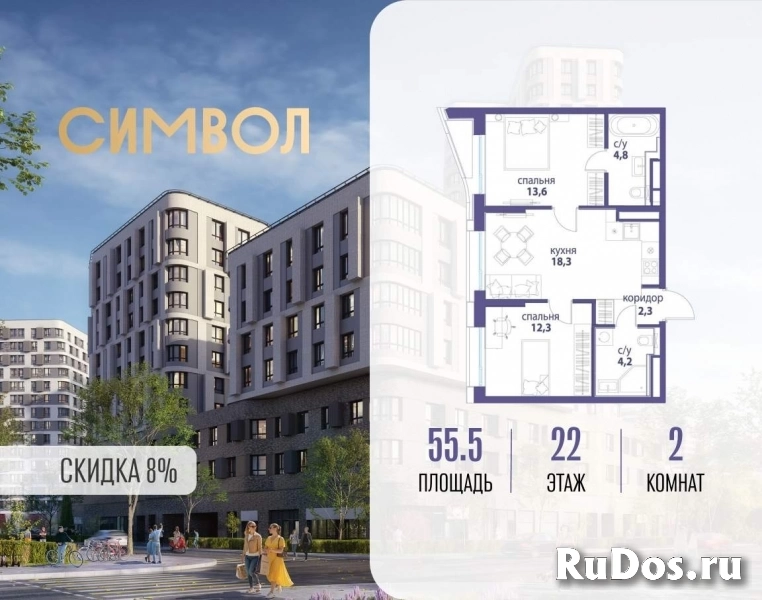 Продается 2-комнатная квартира от застройщика: общая площадь 55.50 м, жилая 25.90 м, кухня 18.30 м, 22-й этаж, жилой квартал «Вдохновение», корпус 33 (секция 3) . Срок сдачи: 4 квартал 2027 года.