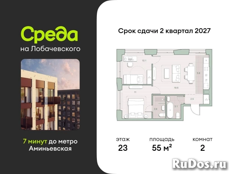 Продаётся двухкомнатная квартира общей площадью 55.00 кв. м. с отделкой White Box. Квартира на 23 этаже корпуса 5.4 в жилом комплексе бизнес-класса «Среда на Лобачевского». До метро «Аминьевская» 7 минут пешком.