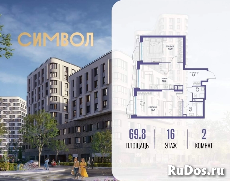 Продается 2-комнатная квартира от застройщика: общая площадь 69.80 м, жилая 36.60 м, кухня 18.20 м, 16-й этаж, жилой квартал «Вдохновение», корпус 34 (секция 1) . Срок сдачи: 4 квартал 2027 года.