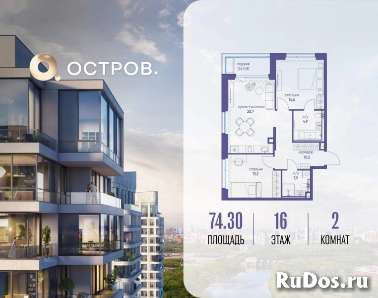Продаётся 2-комн. квартира от застройщика: общая площадь 74.30 м, жилая 27.80 м, кухня 20.70 м, 16-й этаж, жилой квартал «Остров 6», корпус 1 (секция 1) . Срок сдачи: 4 квартал 2025 года.
