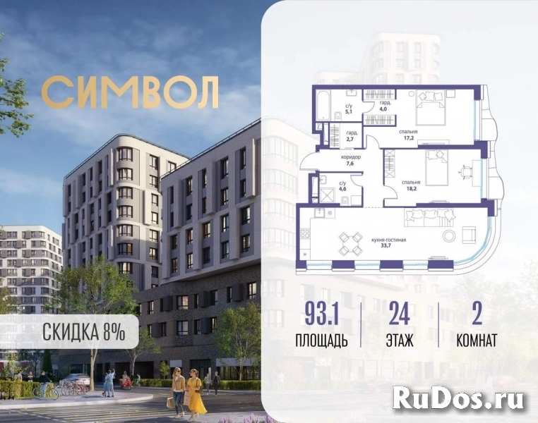 Продается 2-комнатная квартира от застройщика: общая площадь 93.10 м, жилая 35.40 м, кухня 33.70 м, 24-й этаж, жилой квартал «Вдохновение», корпус 35 (секция 1) . Срок сдачи: 4 квартал 2027 года.
