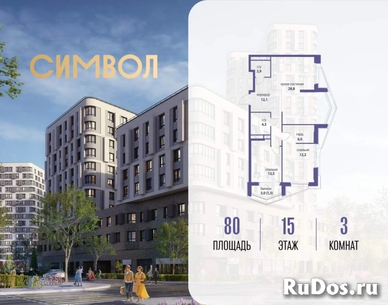 Продается 3-комнатная квартира от застройщика: общая площадь 80.00 м, жилая 24.70 м, кухня 28.80 м, 15-й этаж, жилой квартал «Вдохновение», корпус 32 (секция 1) . Срок сдачи: 4 квартал 2027 года.