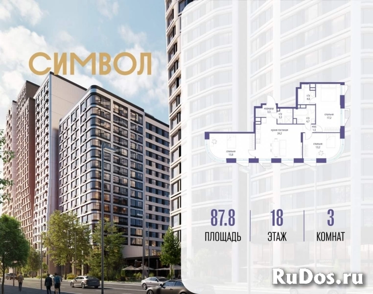 Продается 3-комнатная квартира от застройщика: общая площадь 87.80 м, жилая 46.20 м, кухня 24.20 м, 18-й этаж, жилой квартал «Гордость», корпус 36 (секция 1) . Срок сдачи: 2 квартал 2029 года.