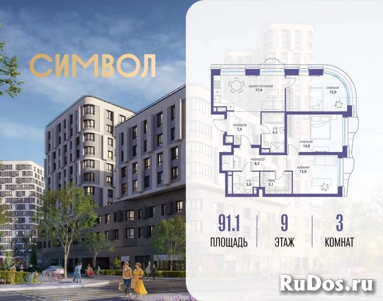 Продается 3-комнатная квартира от застройщика: общая площадь 91.10 м, жилая 42.80 м, кухня 17.60 м, 9-й этаж, жилой квартал «Вдохновение», корпус 34 (секция 1) . Срок сдачи: 4 квартал 2027 года.