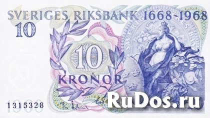 Швеция. 10 крон 1968 года. Юбилейная. 300 лет Банку Швеции.