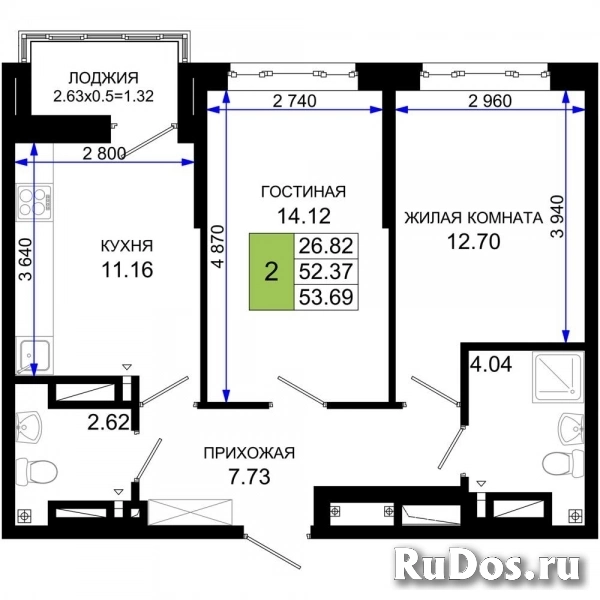 - Общая площадь (м2): 53.69