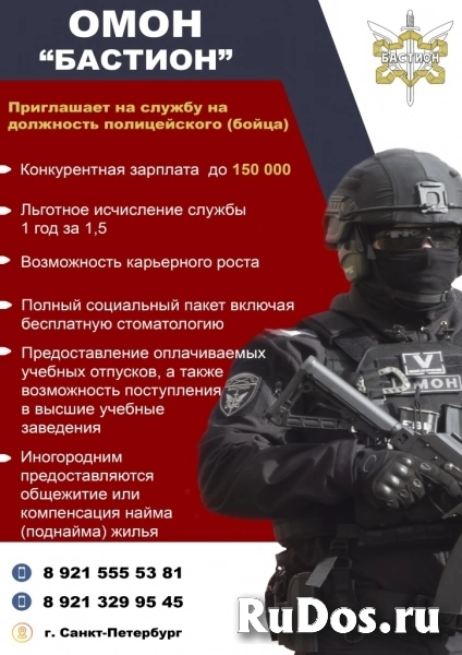 Вакансия компании 5 оперативный батальон ОМОН "Бастион" ГУ Росгвардии по г.Санкт-Петербургу и Ленинградской области